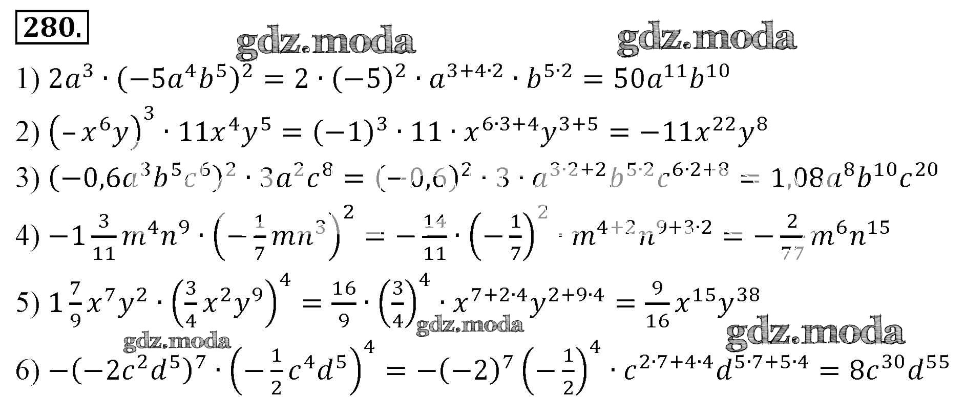 ОТВЕТ на задание № 280 Учебник по Алгебре 7 класс Мерзляк Алгоритм успеха Базовый уровень