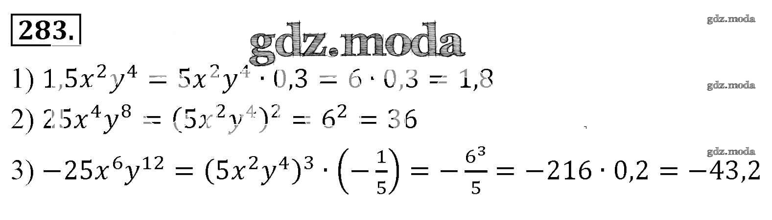 ОТВЕТ на задание № 283 Учебник по Алгебре 7 класс Мерзляк Алгоритм успеха Базовый уровень