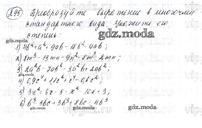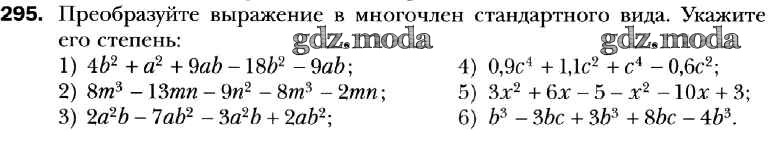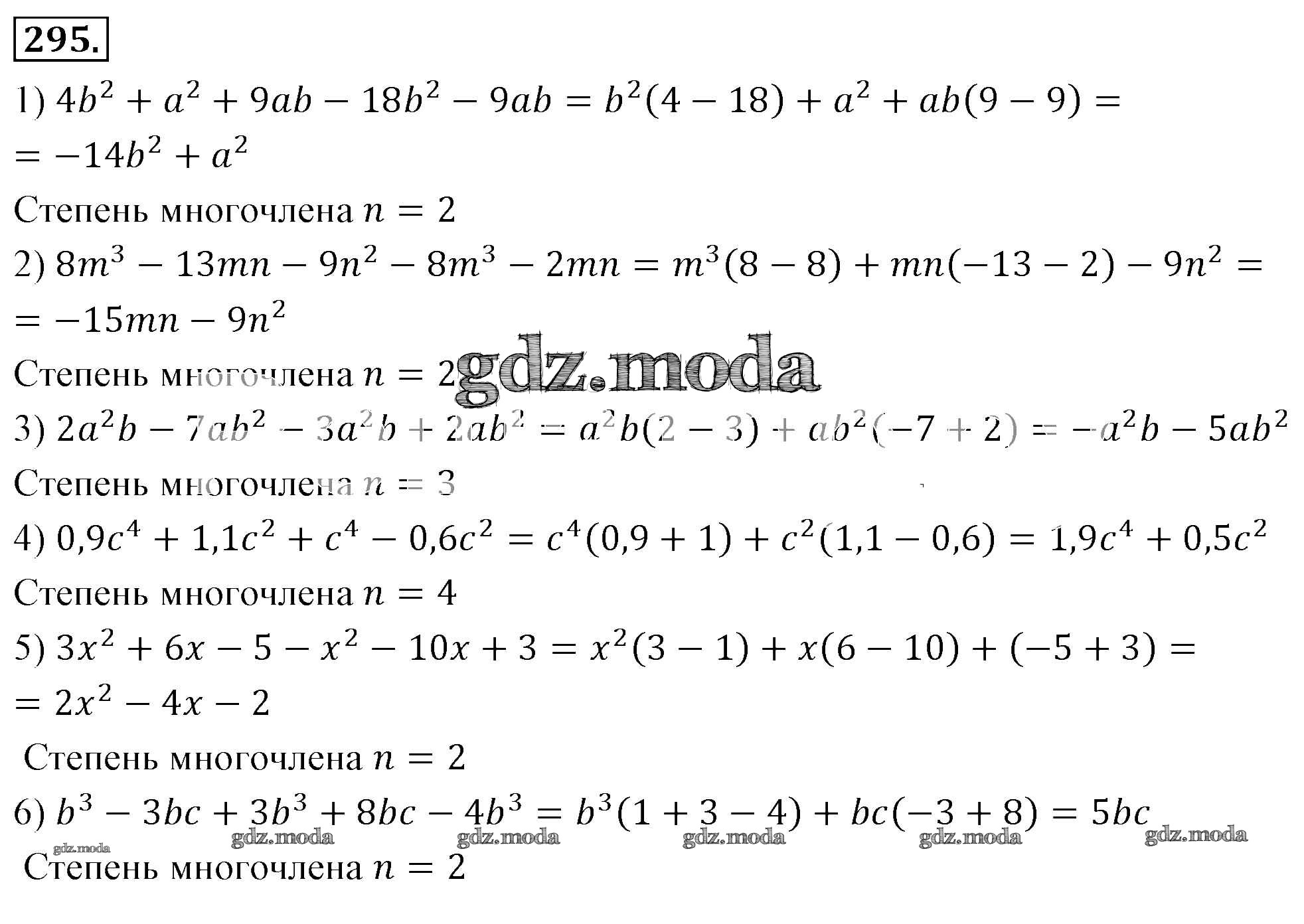 ОТВЕТ на задание № 295 Учебник по Алгебре 7 класс Мерзляк Алгоритм успеха Базовый уровень