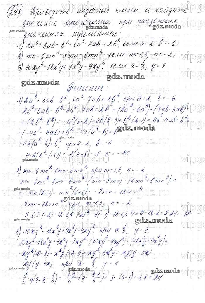 ОТВЕТ на задание № 298 Учебник по Алгебре 7 класс Мерзляк Алгоритм успеха Базовый уровень