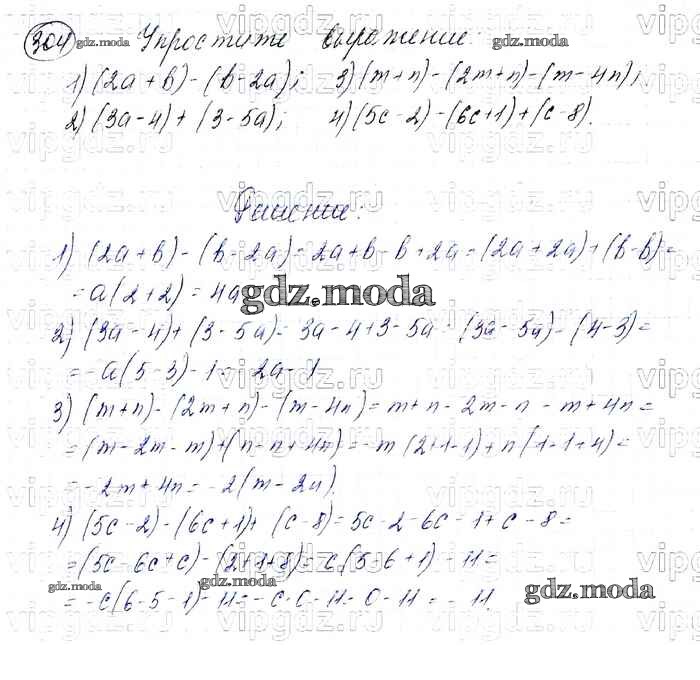 ОТВЕТ на задание № 304 Учебник по Алгебре 7 класс Мерзляк Алгоритм успеха Базовый уровень