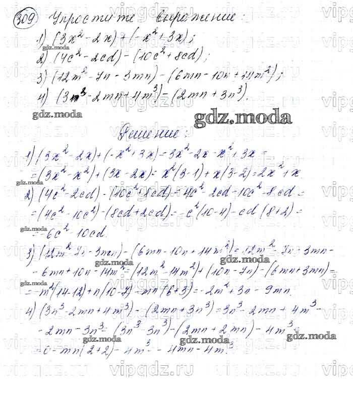 ОТВЕТ на задание № 309 Учебник по Алгебре 7 класс Мерзляк Алгоритм успеха Базовый уровень