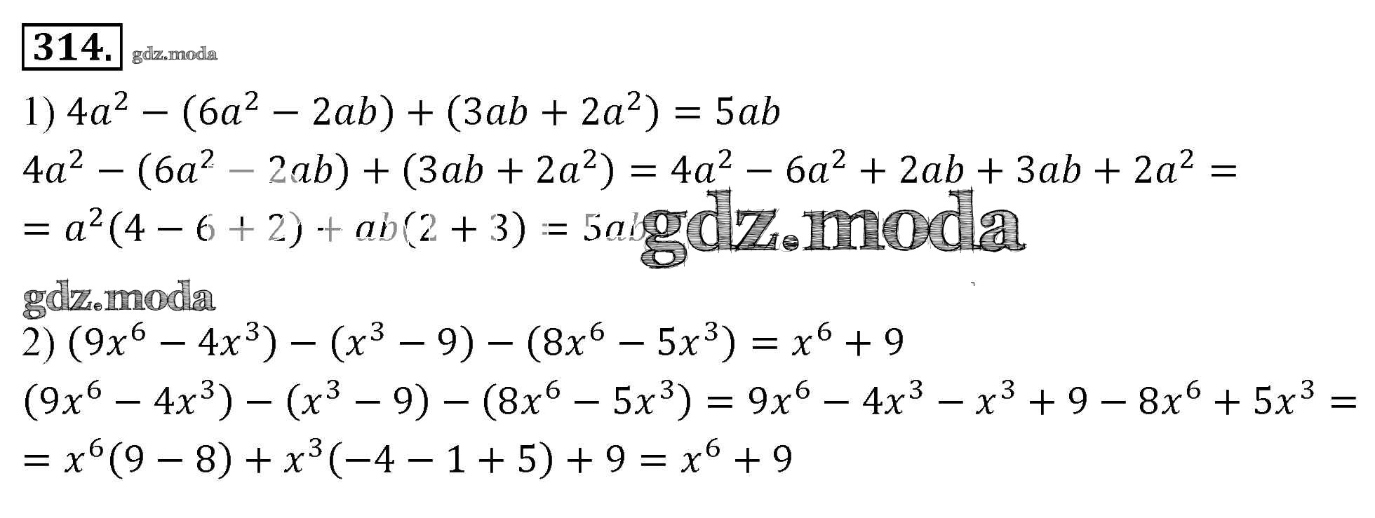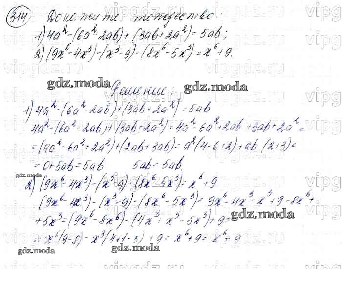 ОТВЕТ на задание № 314 Учебник по Алгебре 7 класс Мерзляк Алгоритм успеха Базовый уровень
