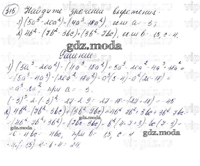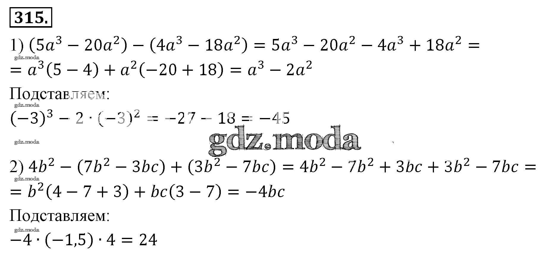 ОТВЕТ на задание № 315 Учебник по Алгебре 7 класс Мерзляк Алгоритм успеха Базовый уровень