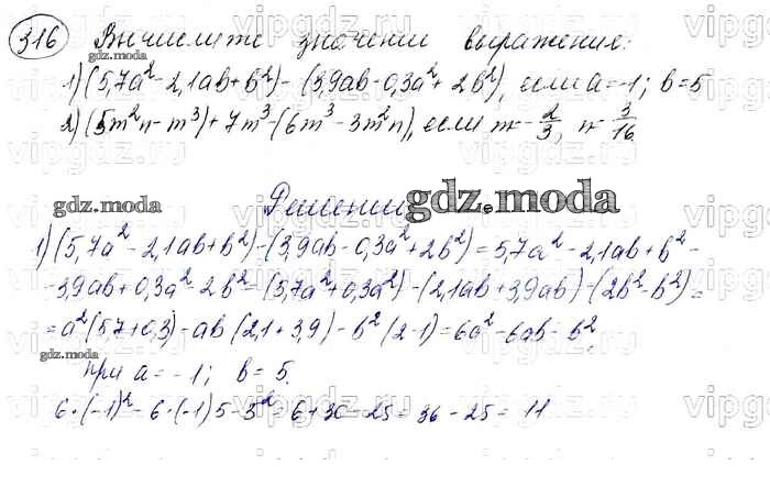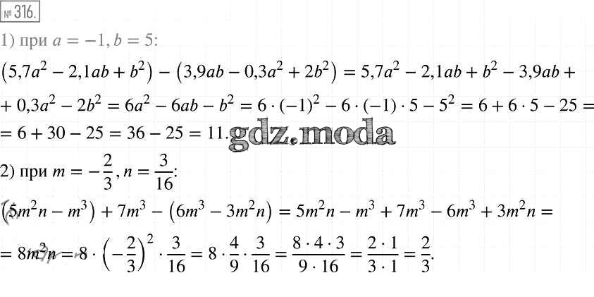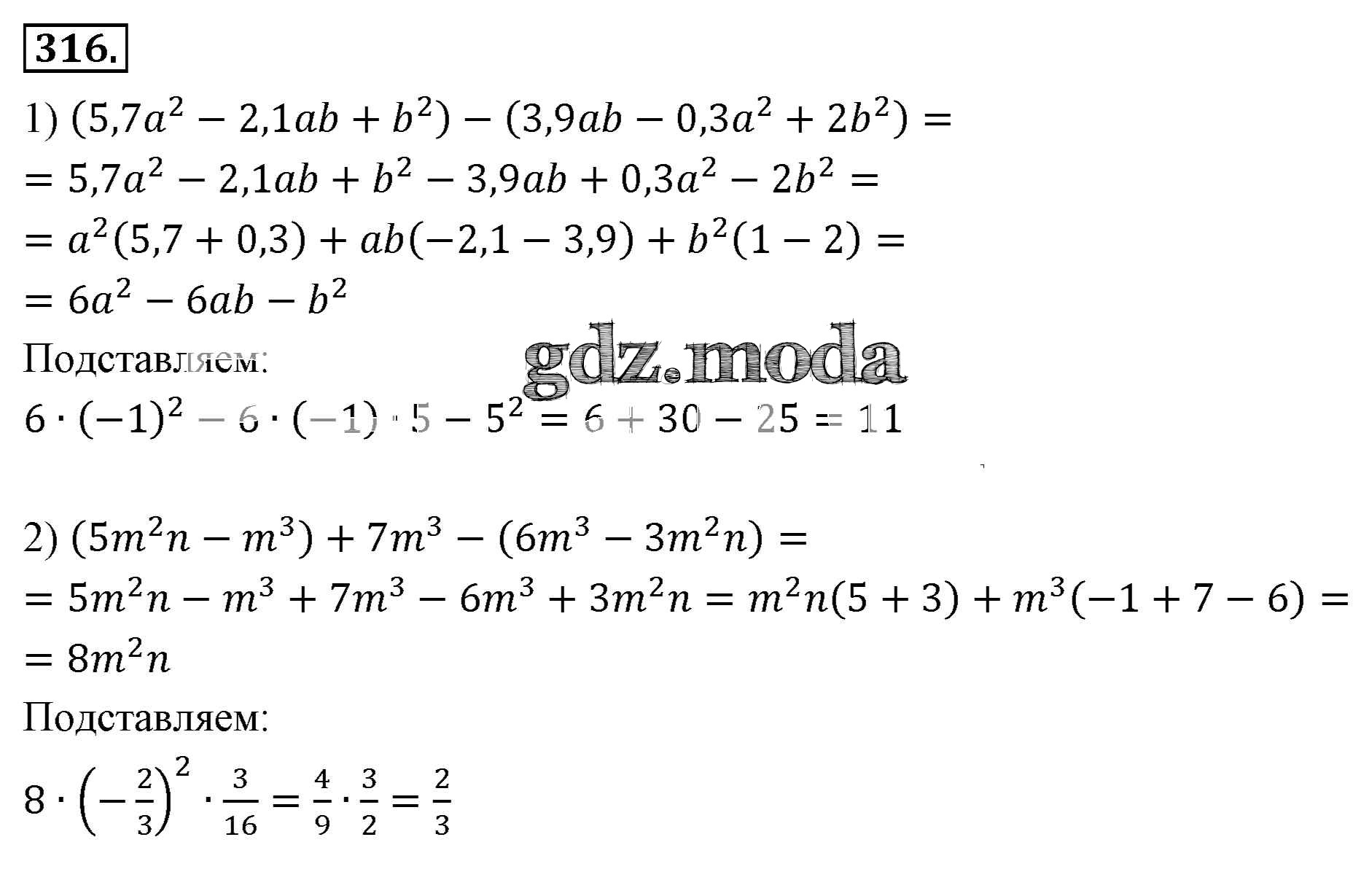 ОТВЕТ на задание № 316 Учебник по Алгебре 7 класс Мерзляк Алгоритм успеха Базовый уровень