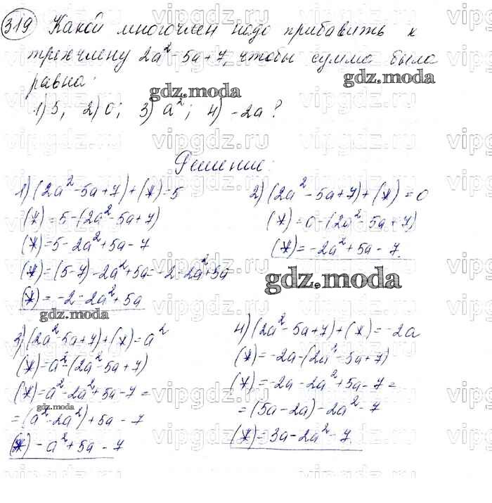 ОТВЕТ на задание № 319 Учебник по Алгебре 7 класс Мерзляк Алгоритм успеха Базовый уровень