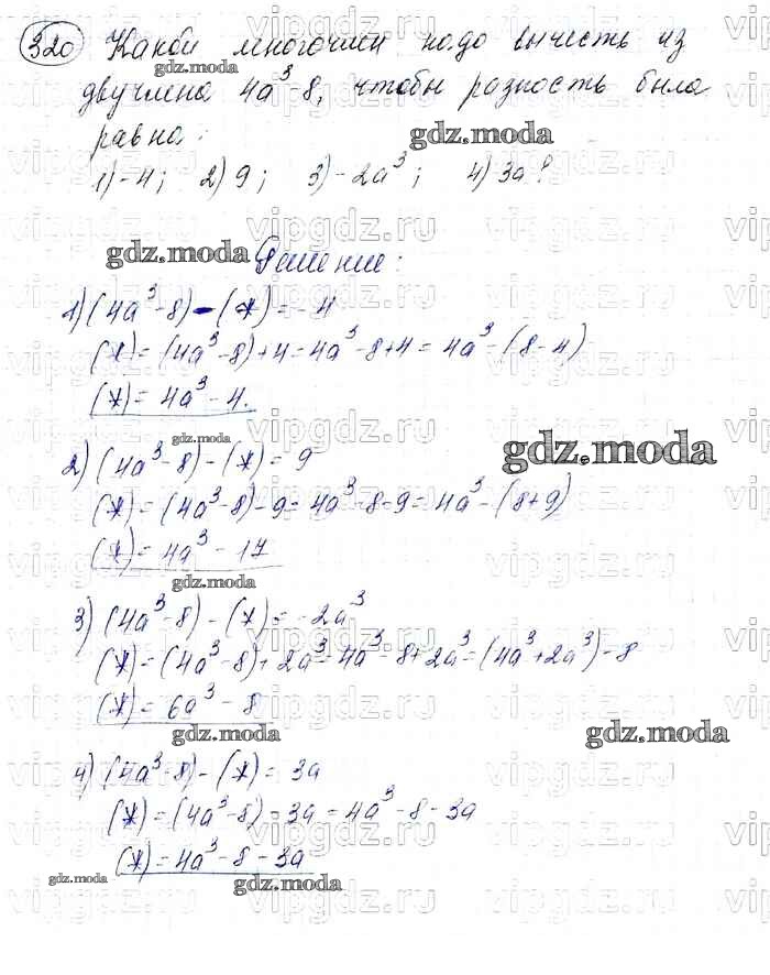 ОТВЕТ на задание № 320 Учебник по Алгебре 7 класс Мерзляк Алгоритм успеха Базовый уровень