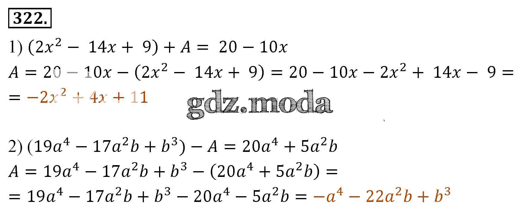 ОТВЕТ на задание № 322 Учебник по Алгебре 7 класс Мерзляк Алгоритм успеха Базовый уровень