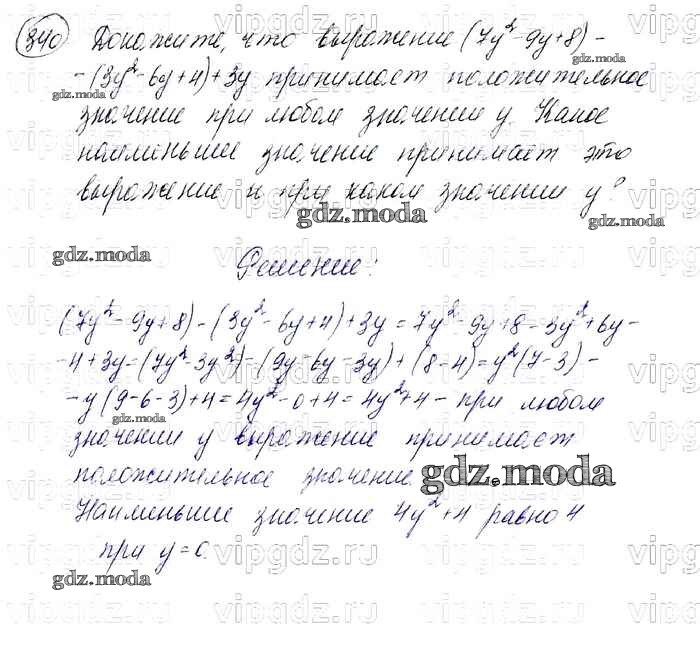 ОТВЕТ на задание № 340 Учебник по Алгебре 7 класс Мерзляк Алгоритм успеха Базовый уровень