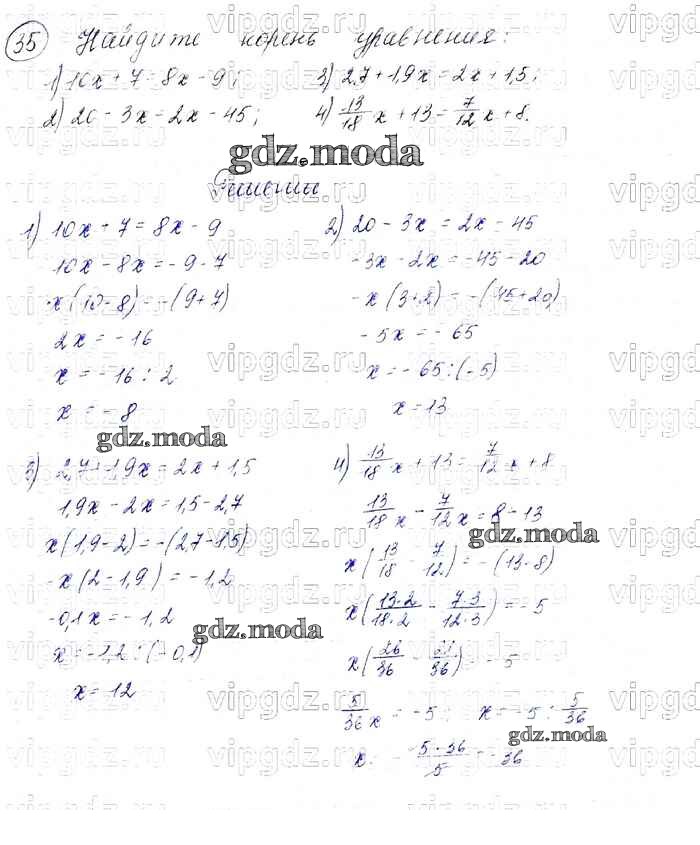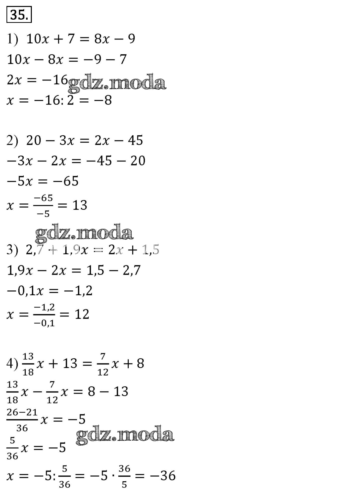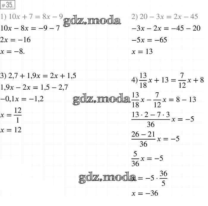 ОТВЕТ на задание № 35 Учебник по Алгебре 7 класс Мерзляк Алгоритм успеха Базовый уровень