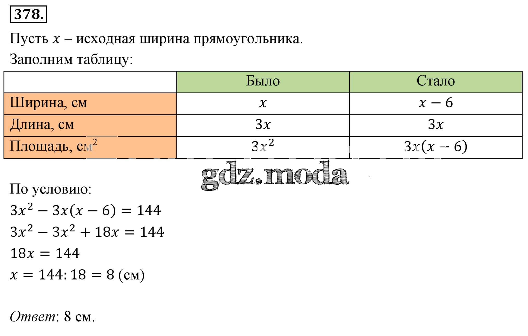 ОТВЕТ на задание № 378 Учебник по Алгебре 7 класс Мерзляк Алгоритм успеха Базовый уровень