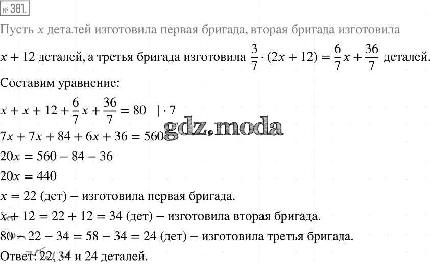 ОТВЕТ на задание № 381 Учебник по Алгебре 7 класс Мерзляк Алгоритм успеха Базовый уровень