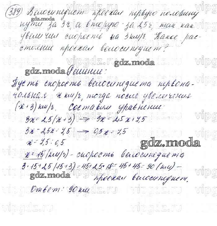 ОТВЕТ на задание № 389 Учебник по Алгебре 7 класс Мерзляк Алгоритм успеха Базовый уровень