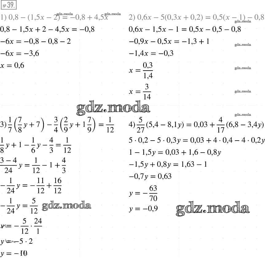 ОТВЕТ на задание № 39 Учебник по Алгебре 7 класс Мерзляк Алгоритм успеха Базовый уровень