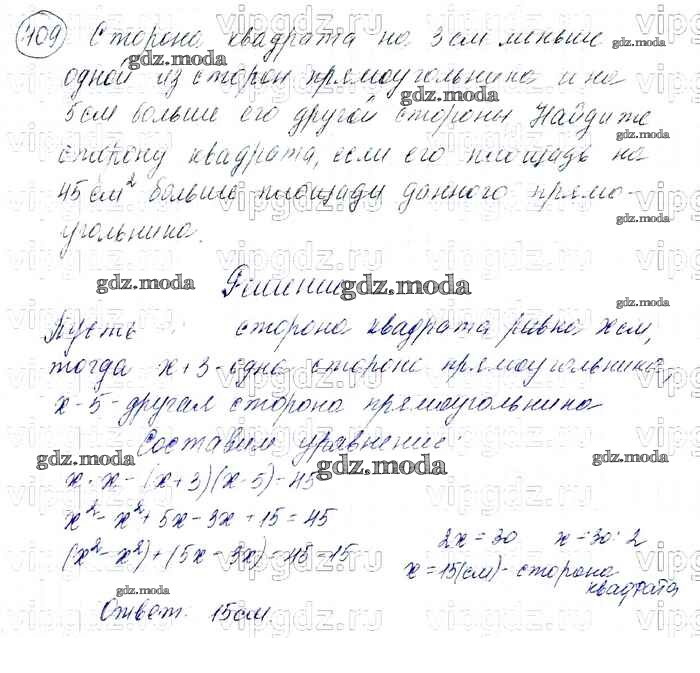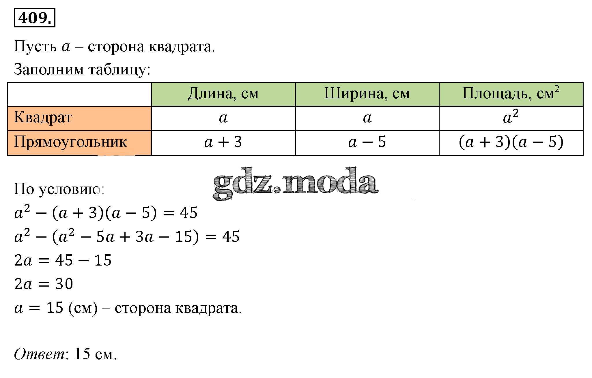 ОТВЕТ на задание № 409 Учебник по Алгебре 7 класс Мерзляк Алгоритм успеха Базовый уровень