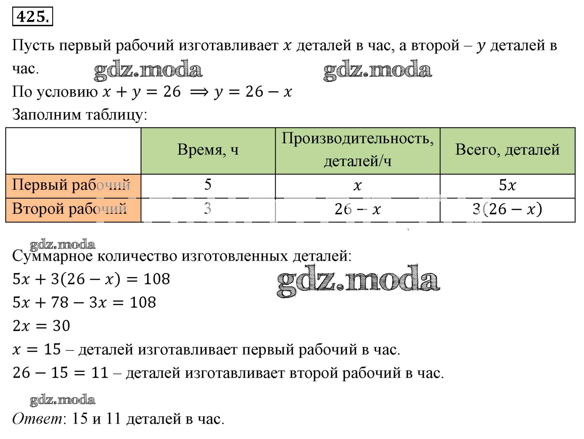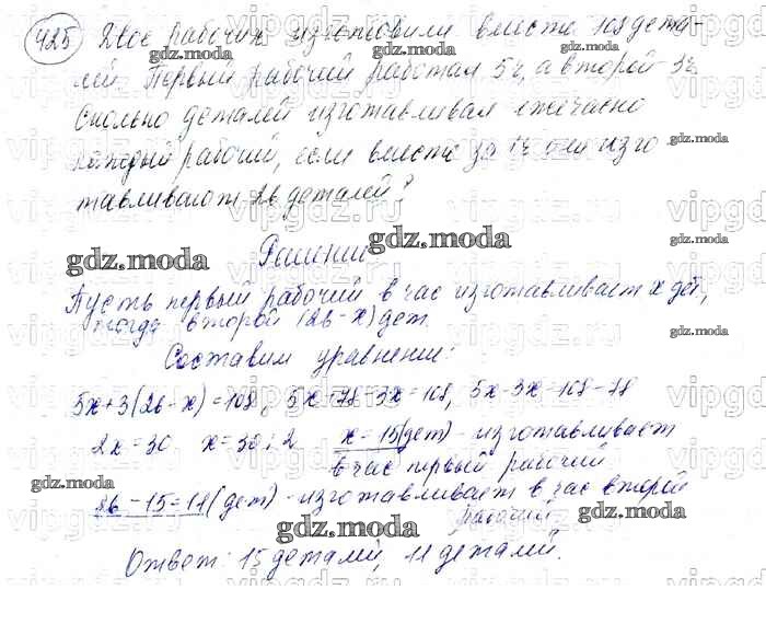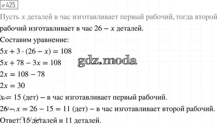 ОТВЕТ на задание № 425 Учебник по Алгебре 7 класс Мерзляк Алгоритм успеха Базовый уровень