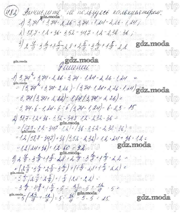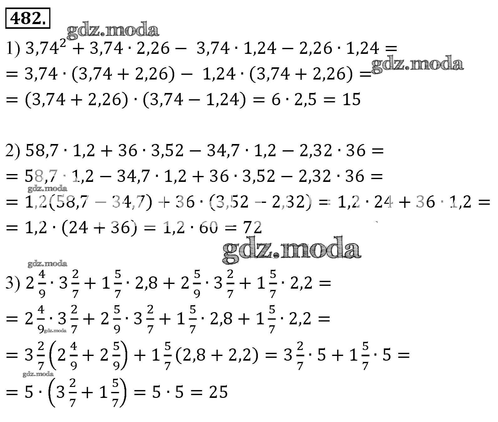 ОТВЕТ на задание № 482 Учебник по Алгебре 7 класс Мерзляк Алгоритм успеха Базовый уровень