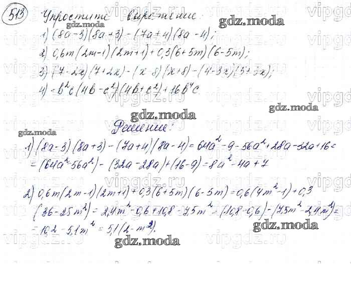 ОТВЕТ на задание № 513 Учебник по Алгебре 7 класс Мерзляк Алгоритм успеха Базовый уровень