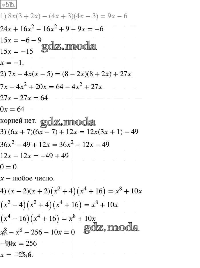 ОТВЕТ на задание № 515 Учебник по Алгебре 7 класс Мерзляк Алгоритм успеха Базовый уровень