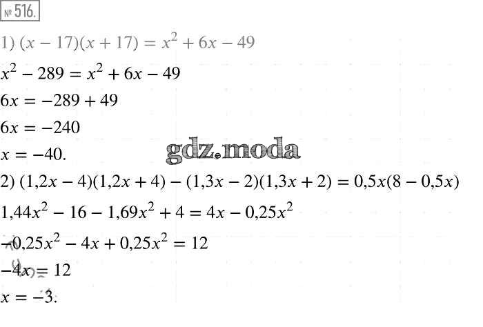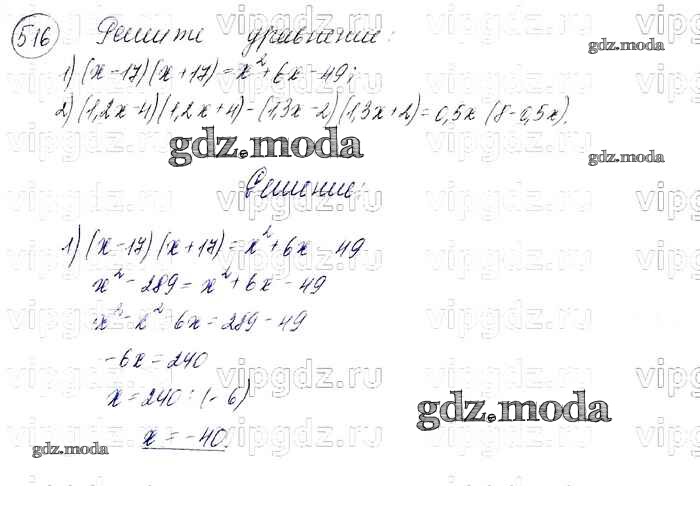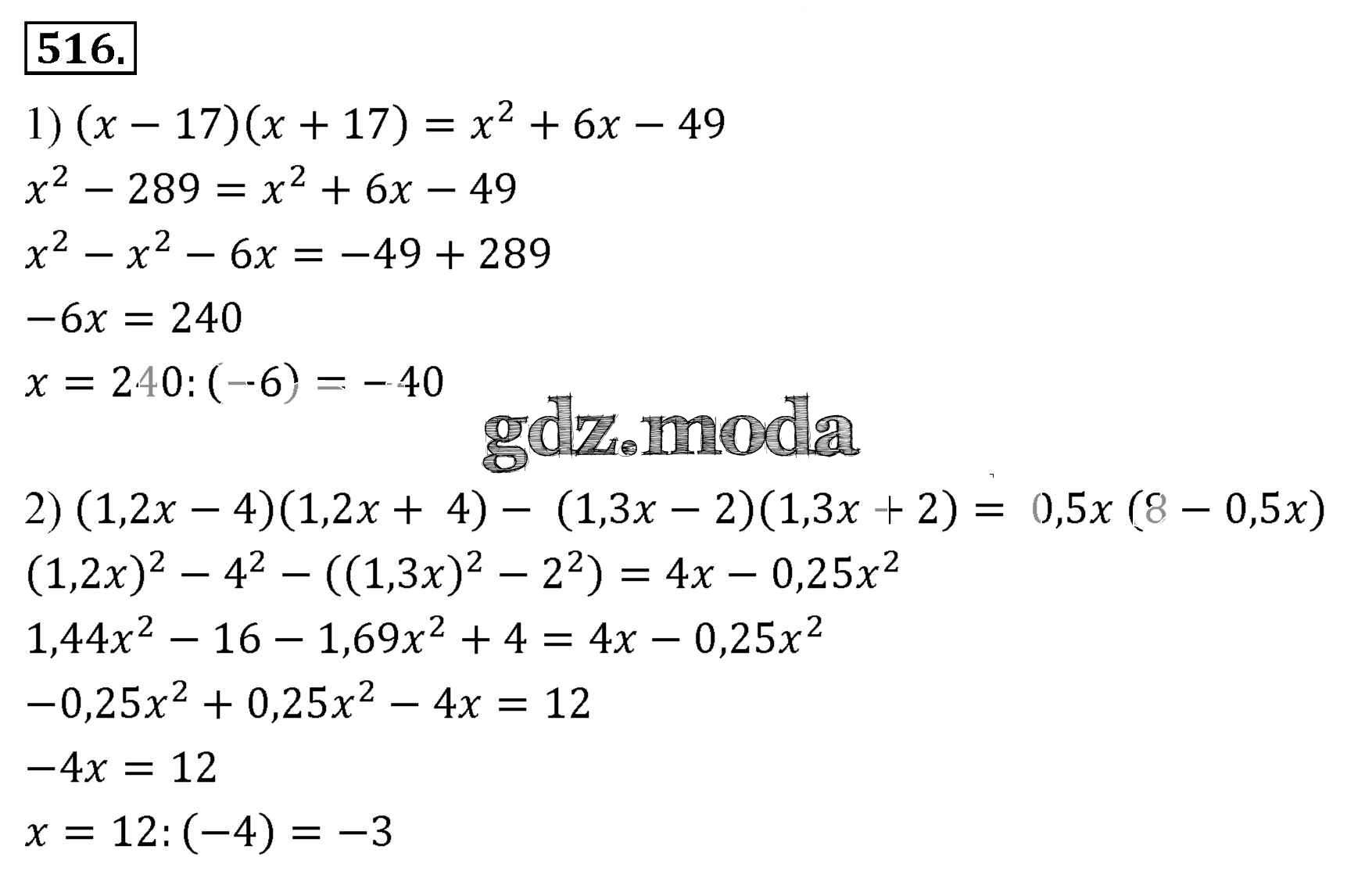 ОТВЕТ на задание № 516 Учебник по Алгебре 7 класс Мерзляк Алгоритм успеха Базовый уровень
