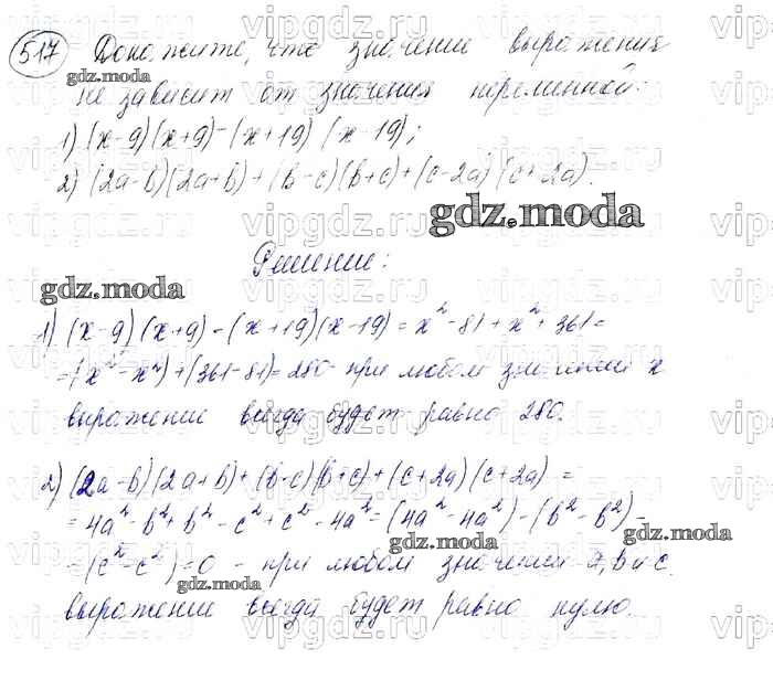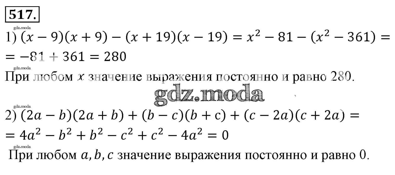 ОТВЕТ на задание № 517 Учебник по Алгебре 7 класс Мерзляк Алгоритм успеха Базовый уровень
