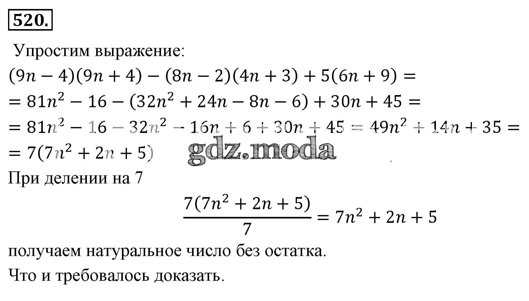 ОТВЕТ на задание № 520 Учебник по Алгебре 7 класс Мерзляк Алгоритм успеха Базовый уровень