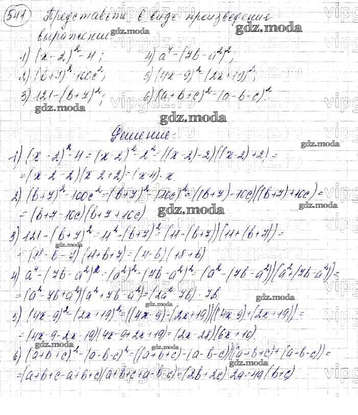ОТВЕТ на задание № 541 Учебник по Алгебре 7 класс Мерзляк Алгоритм успеха Базовый уровень