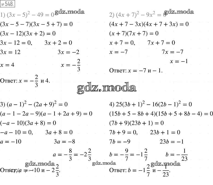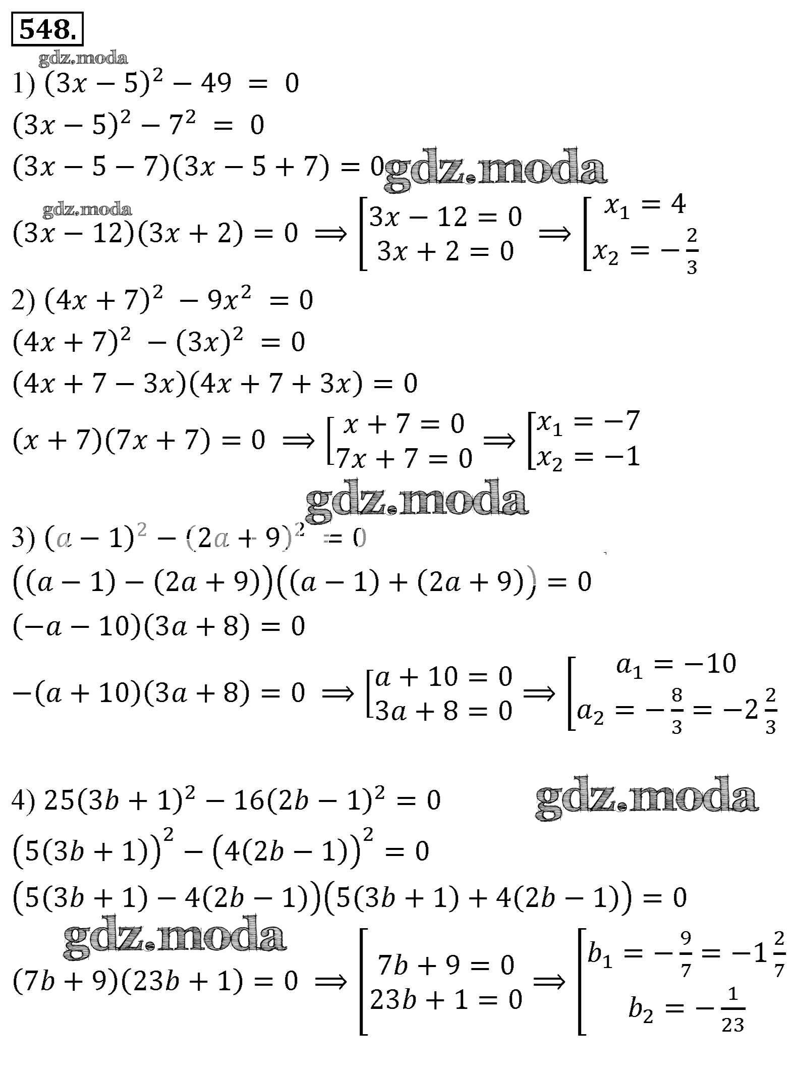 ОТВЕТ на задание № 548 Учебник по Алгебре 7 класс Мерзляк Алгоритм успеха Базовый уровень