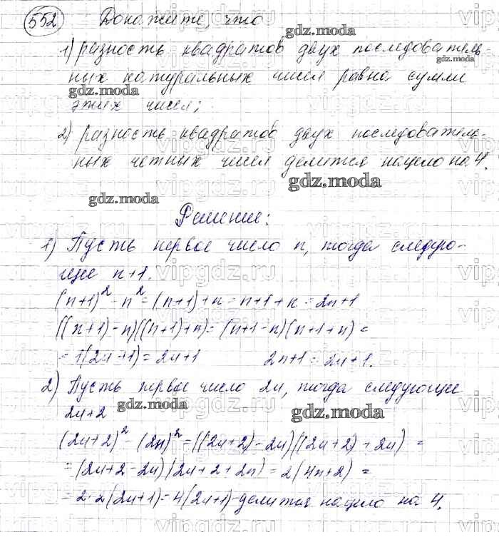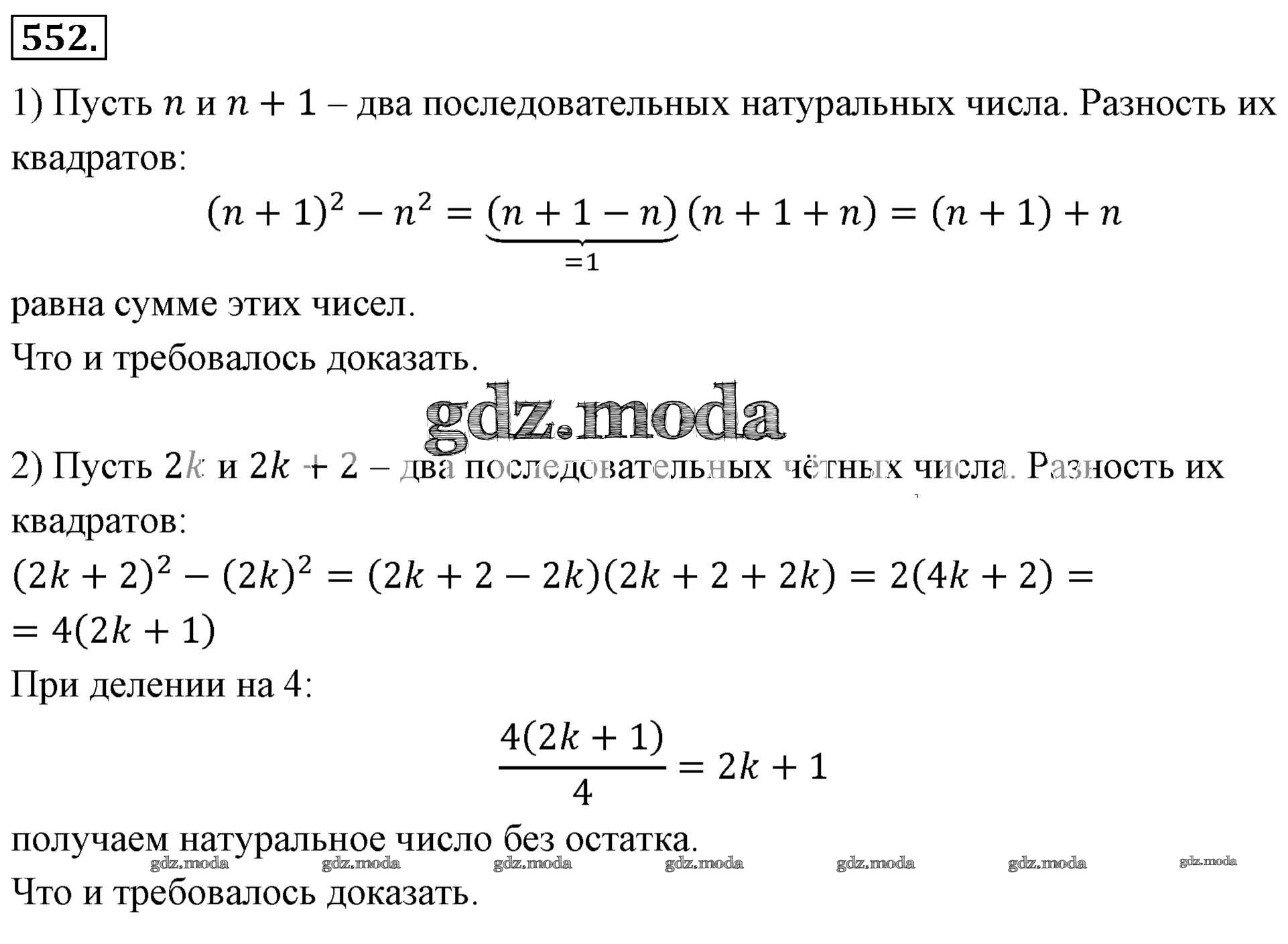 ОТВЕТ на задание № 552 Учебник по Алгебре 7 класс Мерзляк Алгоритм успеха Базовый уровень