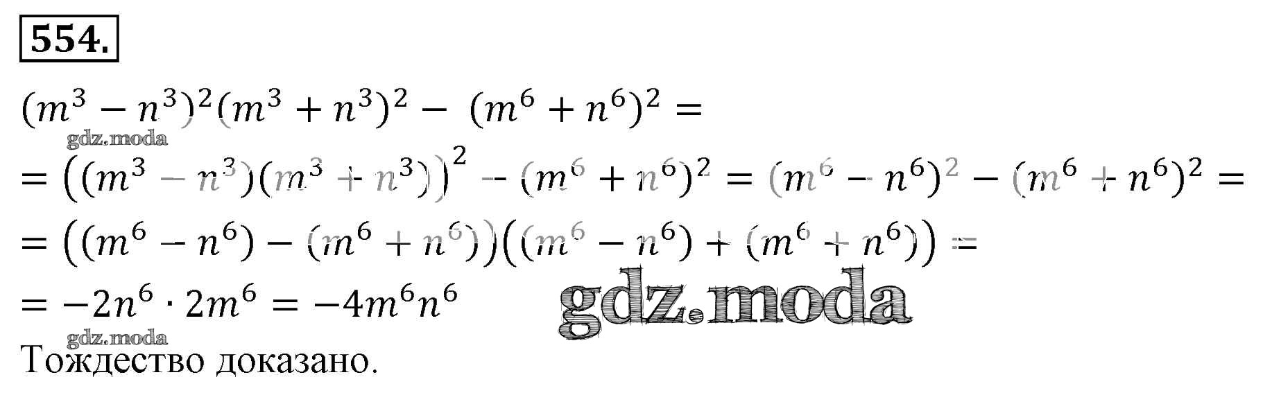 ОТВЕТ на задание № 554 Учебник по Алгебре 7 класс Мерзляк Алгоритм успеха Базовый уровень