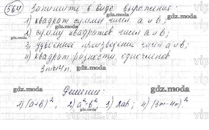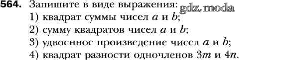 ОТВЕТ на задание № 564 Учебник по Алгебре 7 класс Мерзляк Алгоритм успеха Базовый уровень