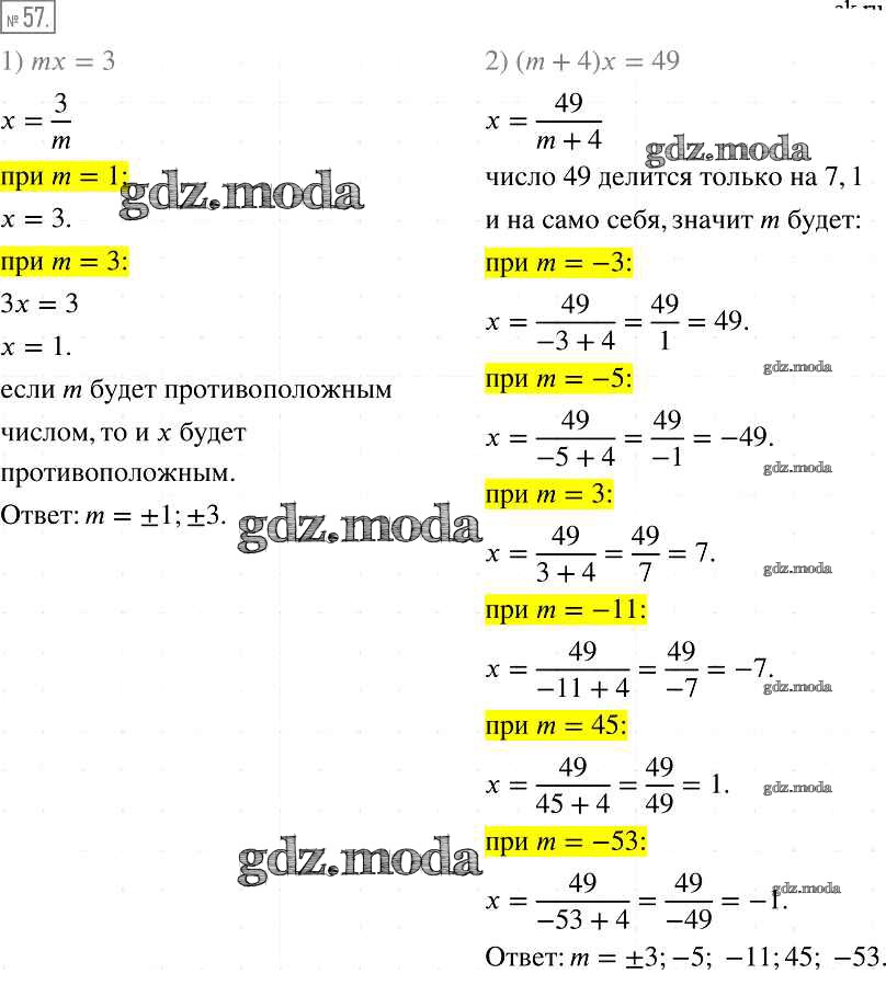 ОТВЕТ на задание № 57 Учебник по Алгебре 7 класс Мерзляк Алгоритм успеха Базовый уровень
