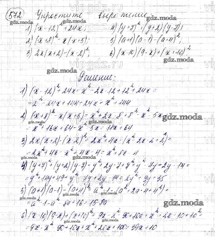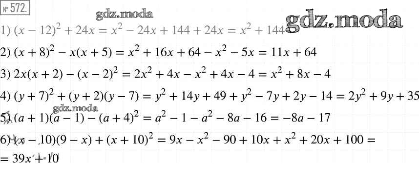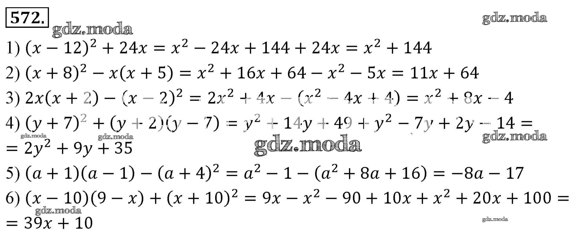 ОТВЕТ на задание № 572 Учебник по Алгебре 7 класс Мерзляк Алгоритм успеха Базовый уровень
