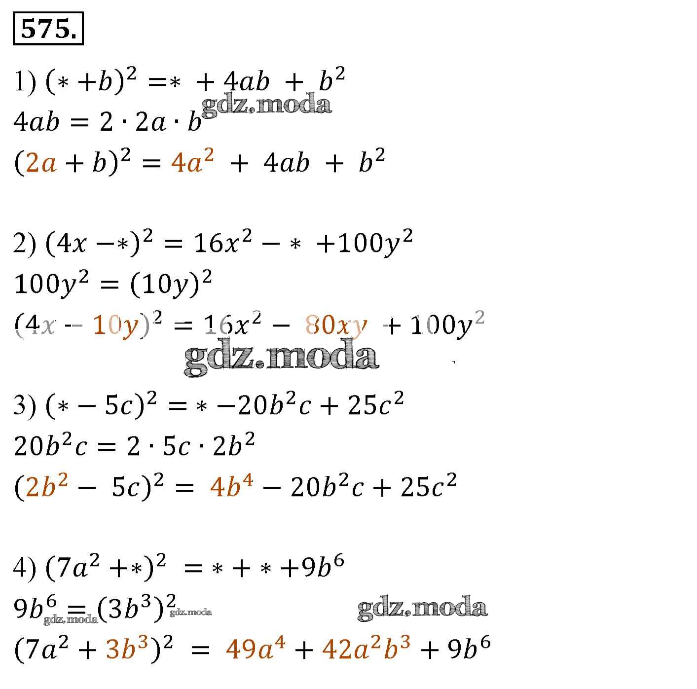 ОТВЕТ на задание № 575 Учебник по Алгебре 7 класс Мерзляк Алгоритм успеха Базовый уровень