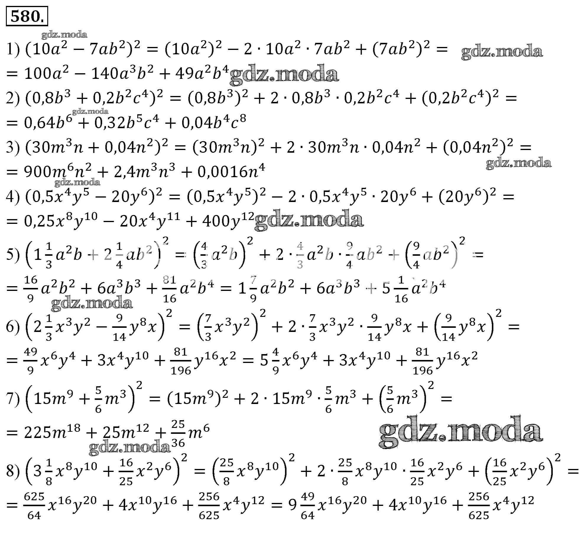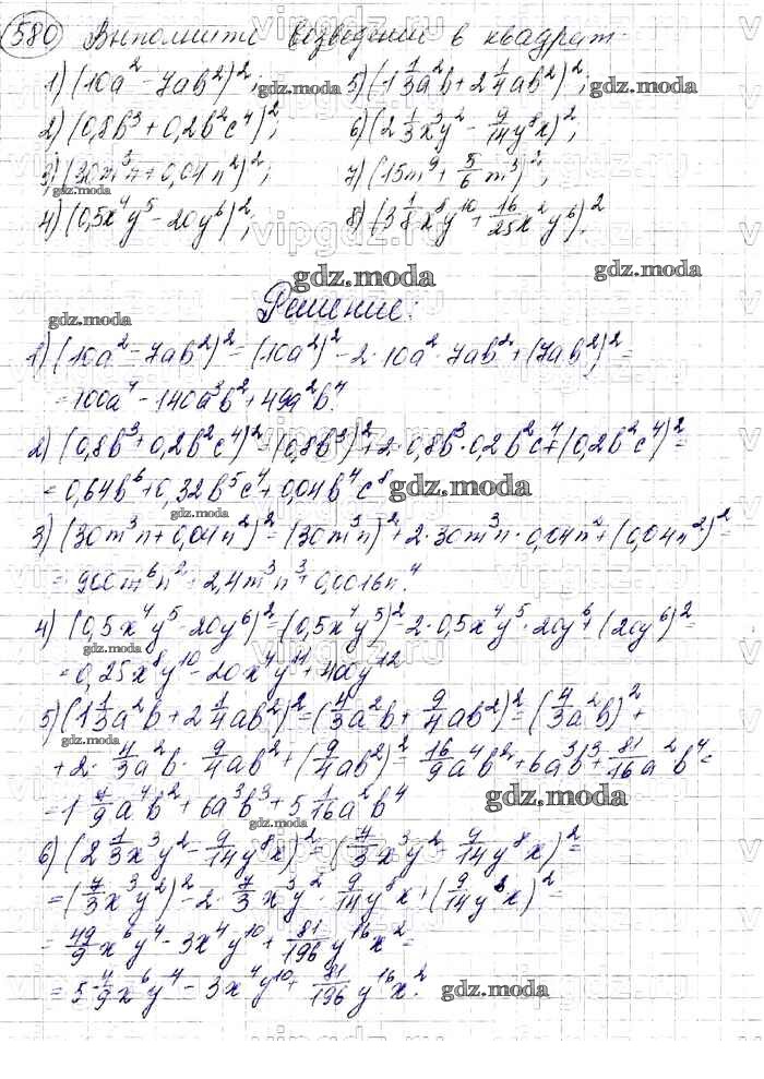 ОТВЕТ на задание № 580 Учебник по Алгебре 7 класс Мерзляк Алгоритм успеха Базовый уровень