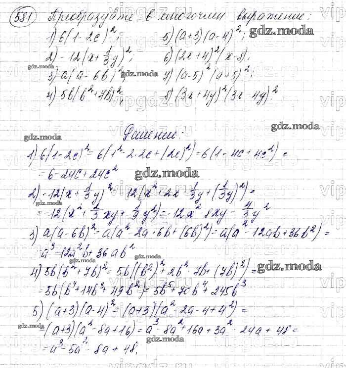 ОТВЕТ на задание № 581 Учебник по Алгебре 7 класс Мерзляк Алгоритм успеха Базовый уровень