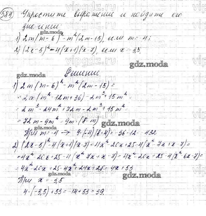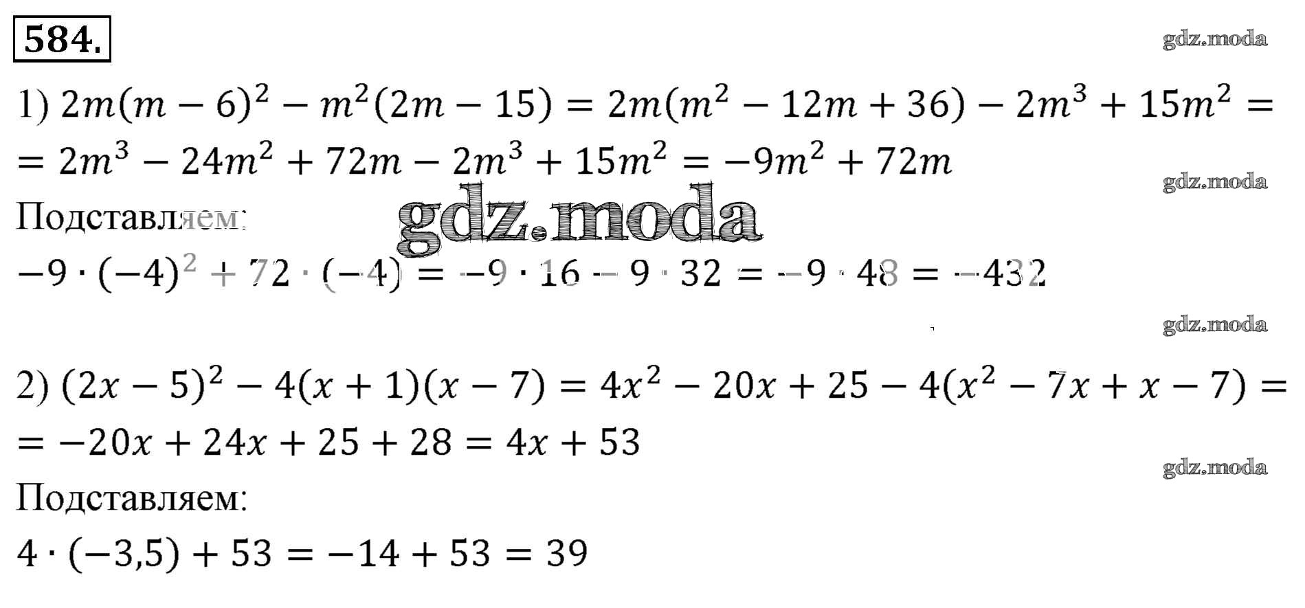 ОТВЕТ на задание № 584 Учебник по Алгебре 7 класс Мерзляк Алгоритм успеха Базовый уровень
