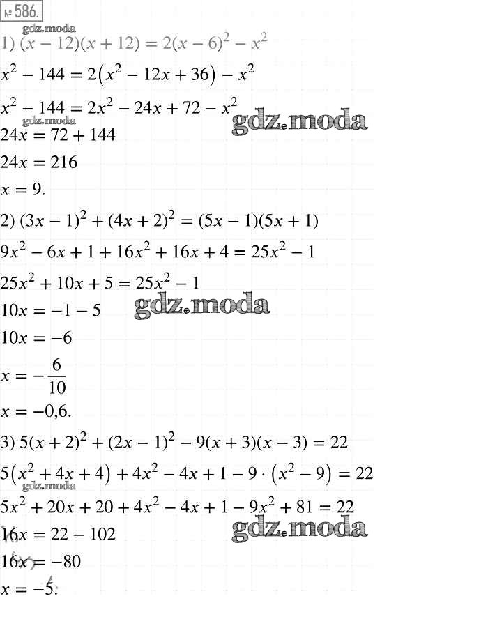 ОТВЕТ на задание № 586 Учебник по Алгебре 7 класс Мерзляк Алгоритм успеха Базовый уровень