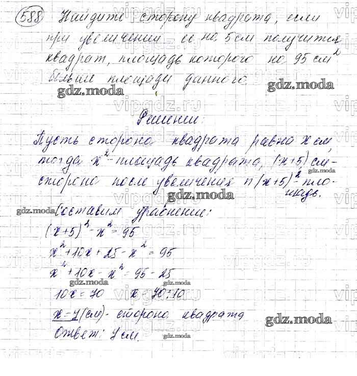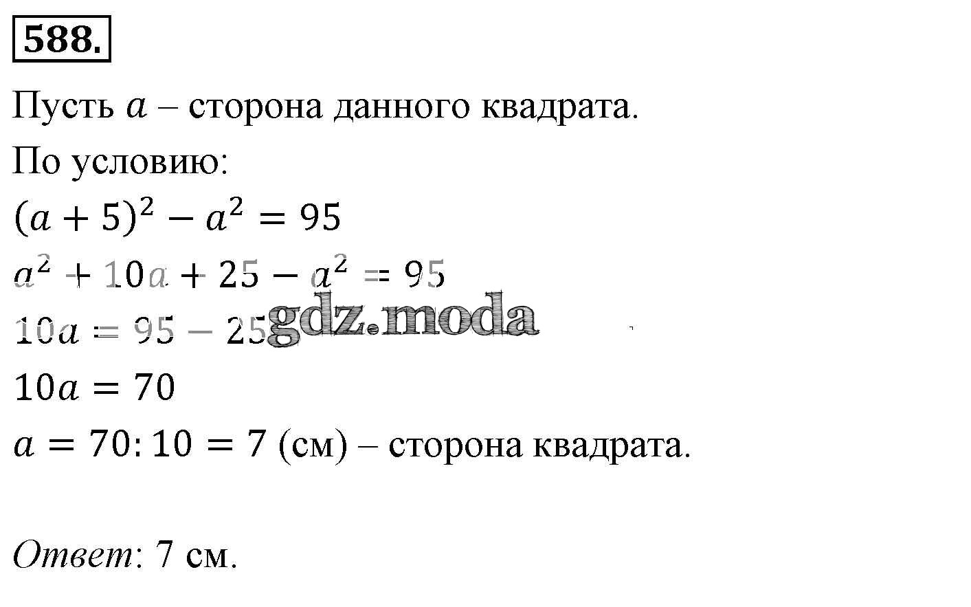 ОТВЕТ на задание № 588 Учебник по Алгебре 7 класс Мерзляк Алгоритм успеха Базовый уровень