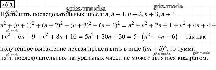 ОТВЕТ на задание № 615 Учебник по Алгебре 7 класс Мерзляк Алгоритм успеха Базовый уровень