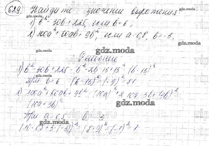 ОТВЕТ на задание № 629 Учебник по Алгебре 7 класс Мерзляк Алгоритм успеха Базовый уровень