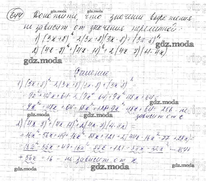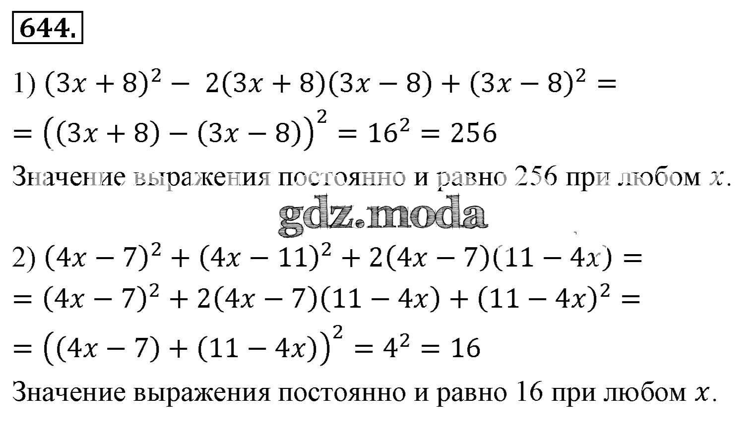 ОТВЕТ на задание № 644 Учебник по Алгебре 7 класс Мерзляк Алгоритм успеха Базовый уровень