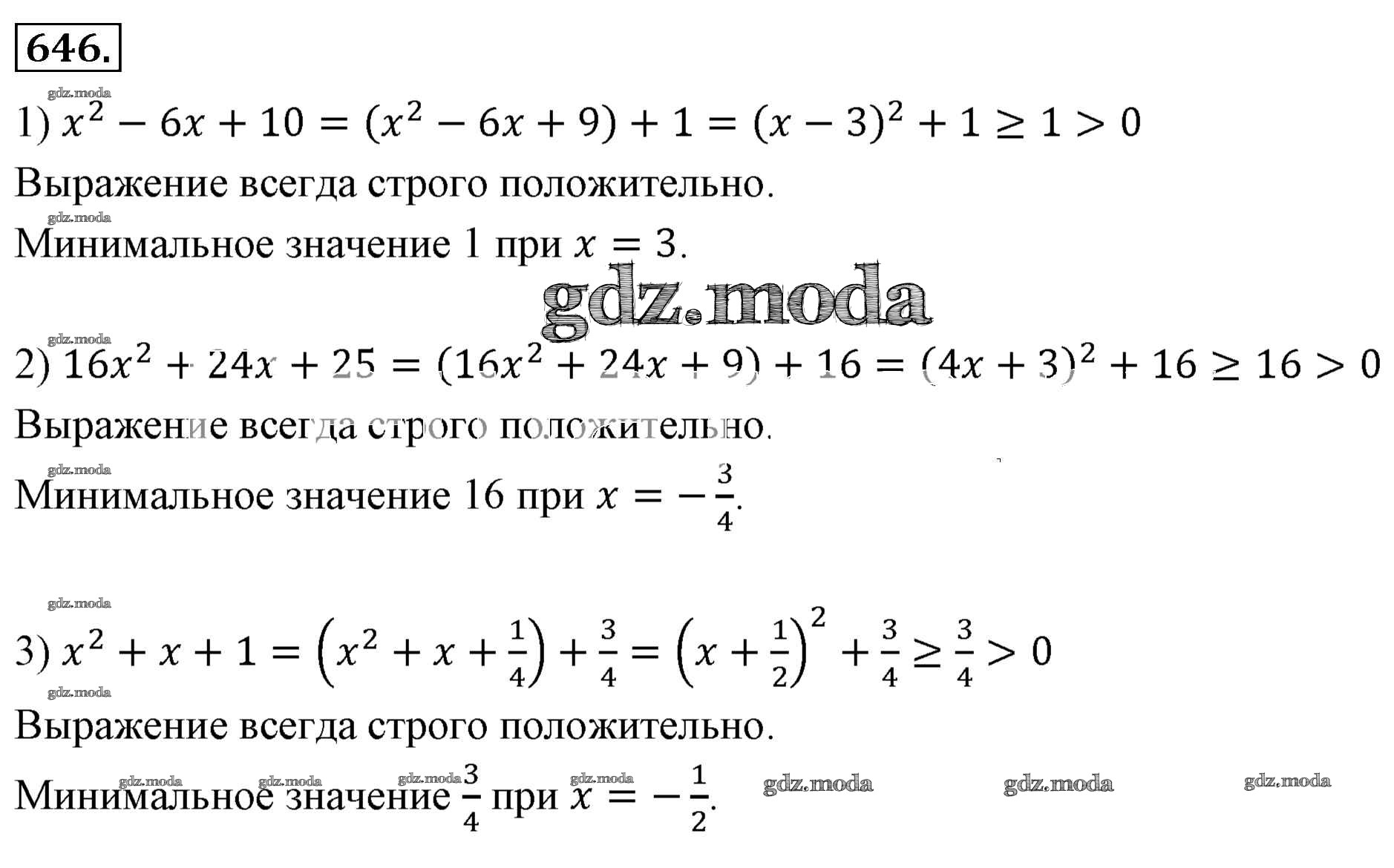 ОТВЕТ на задание № 646 Учебник по Алгебре 7 класс Мерзляк Алгоритм успеха Базовый уровень