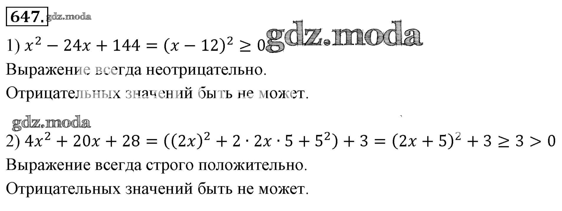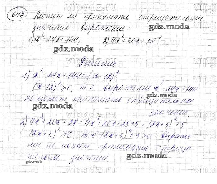 ОТВЕТ на задание № 647 Учебник по Алгебре 7 класс Мерзляк Алгоритм успеха Базовый уровень