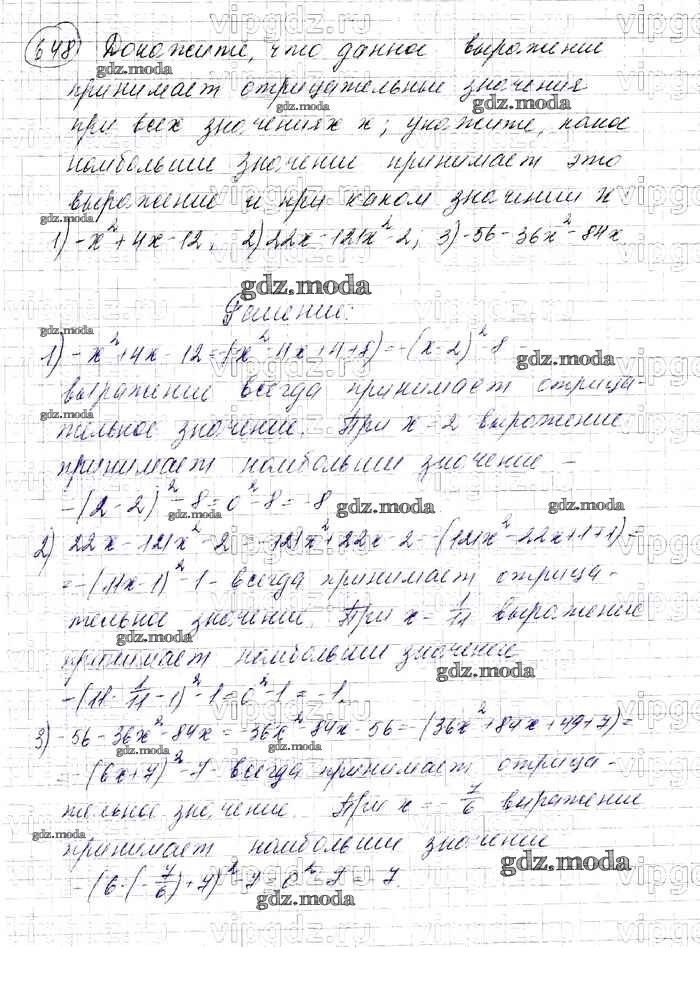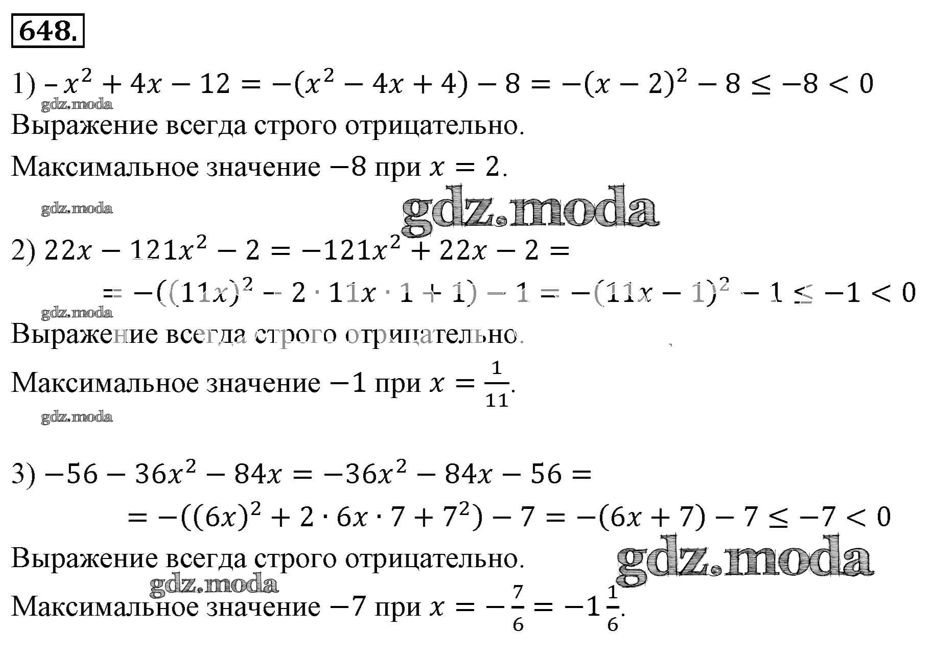 ОТВЕТ на задание № 648 Учебник по Алгебре 7 класс Мерзляк Алгоритм успеха Базовый уровень