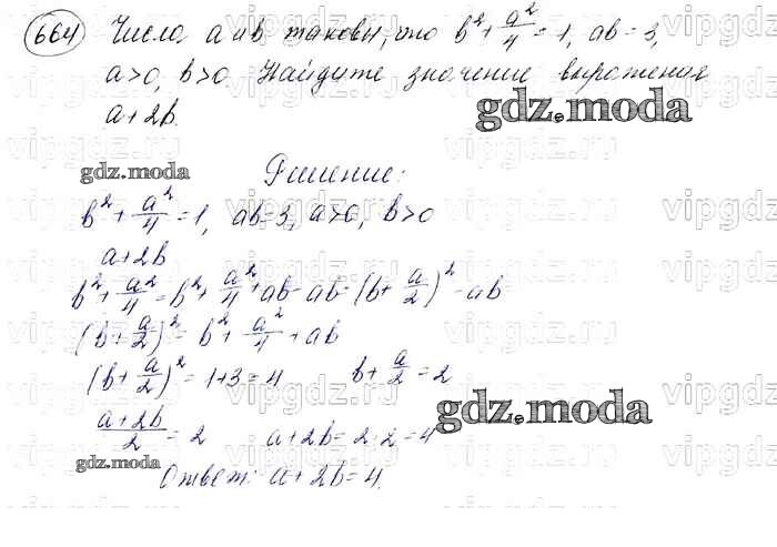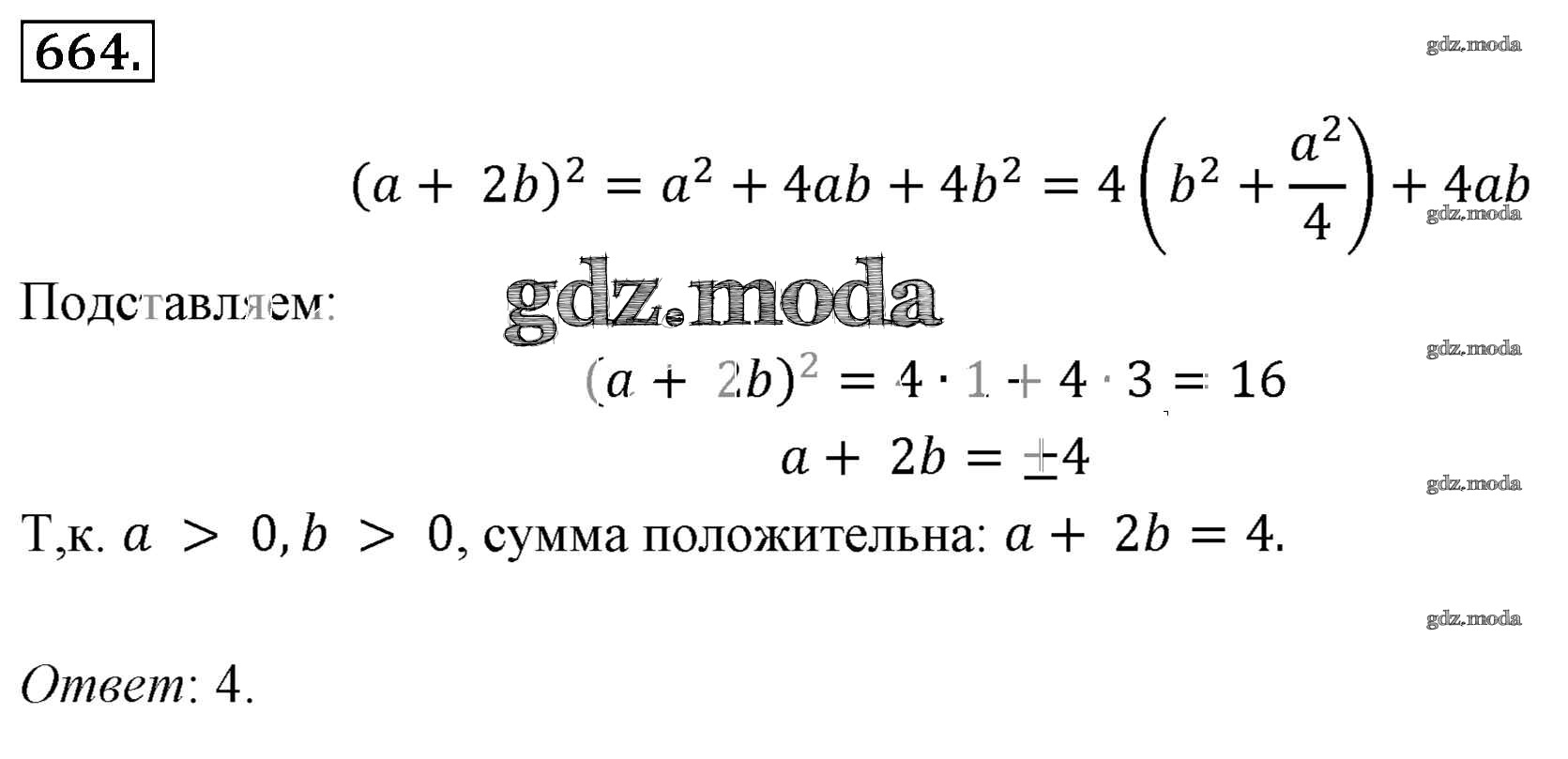 ОТВЕТ на задание № 664 Учебник по Алгебре 7 класс Мерзляк Алгоритм успеха Базовый уровень