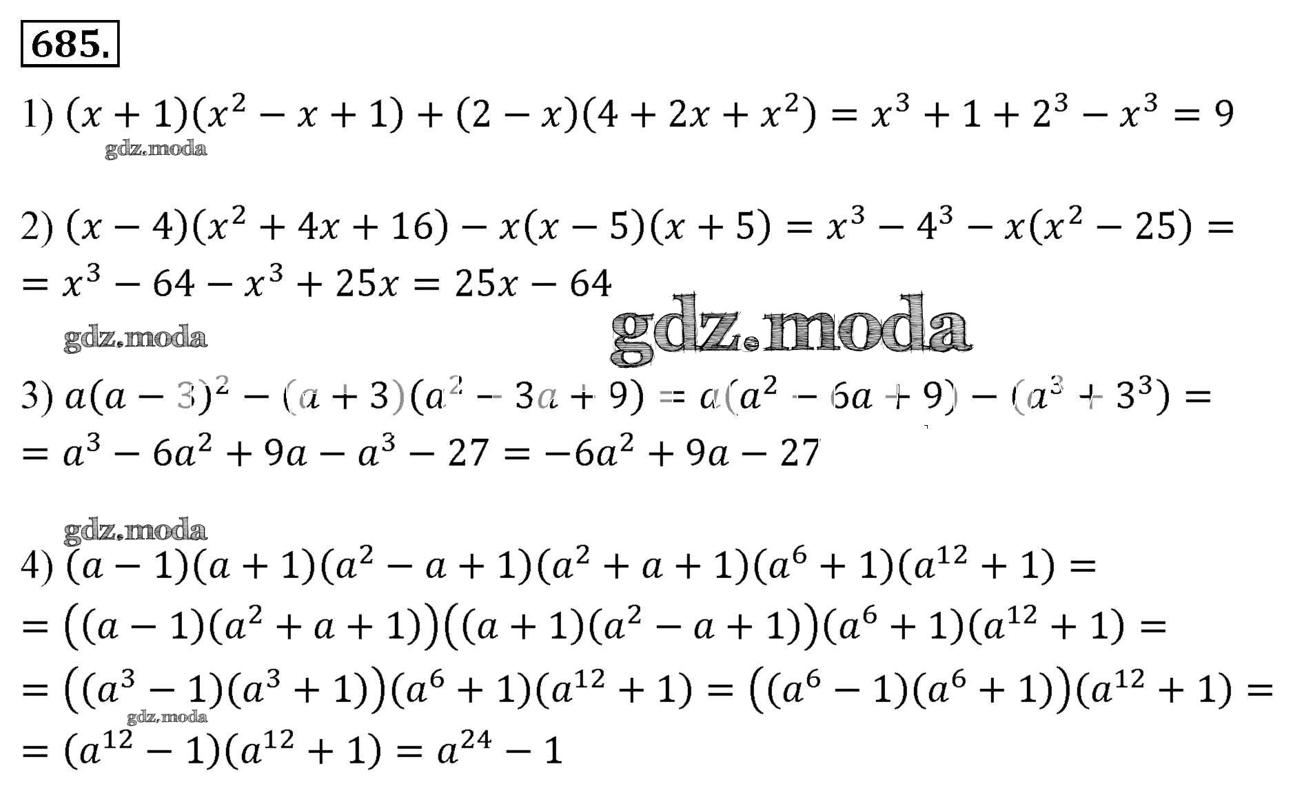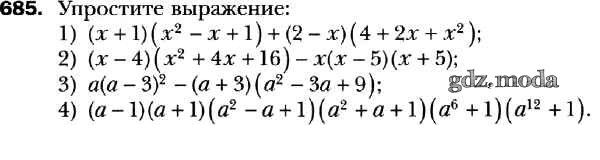 ОТВЕТ на задание № 685 Учебник по Алгебре 7 класс Мерзляк Алгоритм успеха Базовый уровень