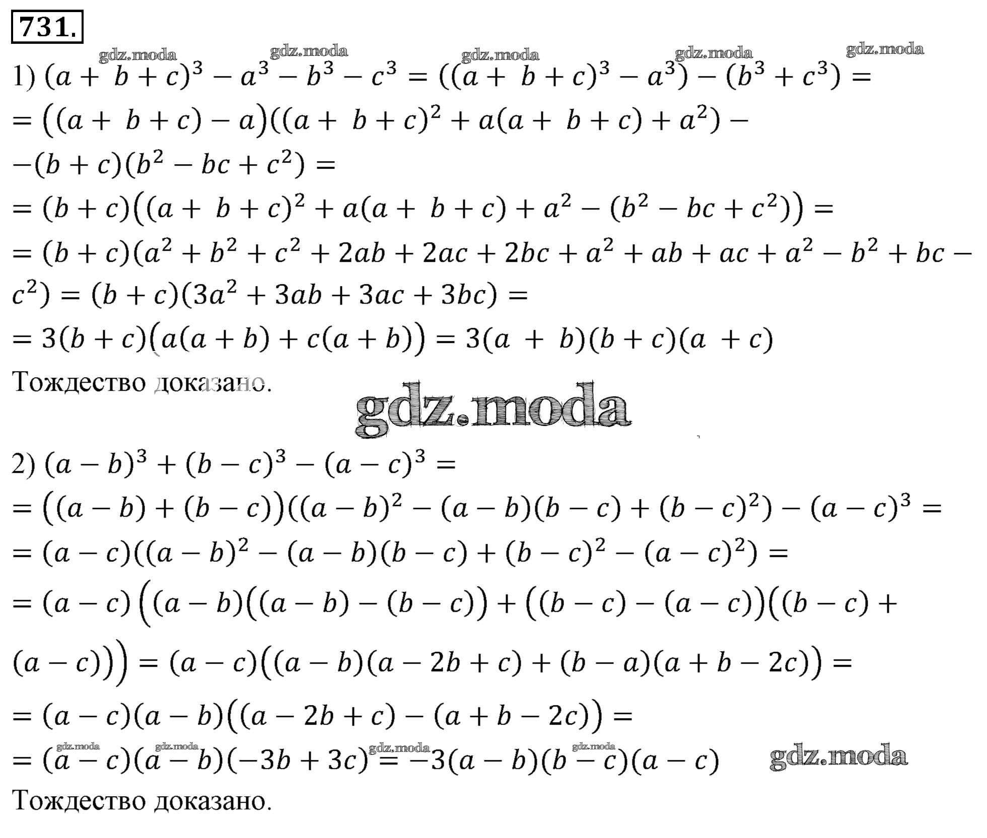 ОТВЕТ на задание № 731 Учебник по Алгебре 7 класс Мерзляк Алгоритм успеха Базовый уровень