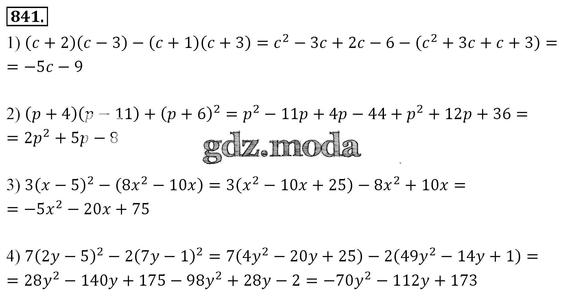 ОТВЕТ на задание № 841 Учебник по Алгебре 7 класс Мерзляк Алгоритм успеха Базовый уровень