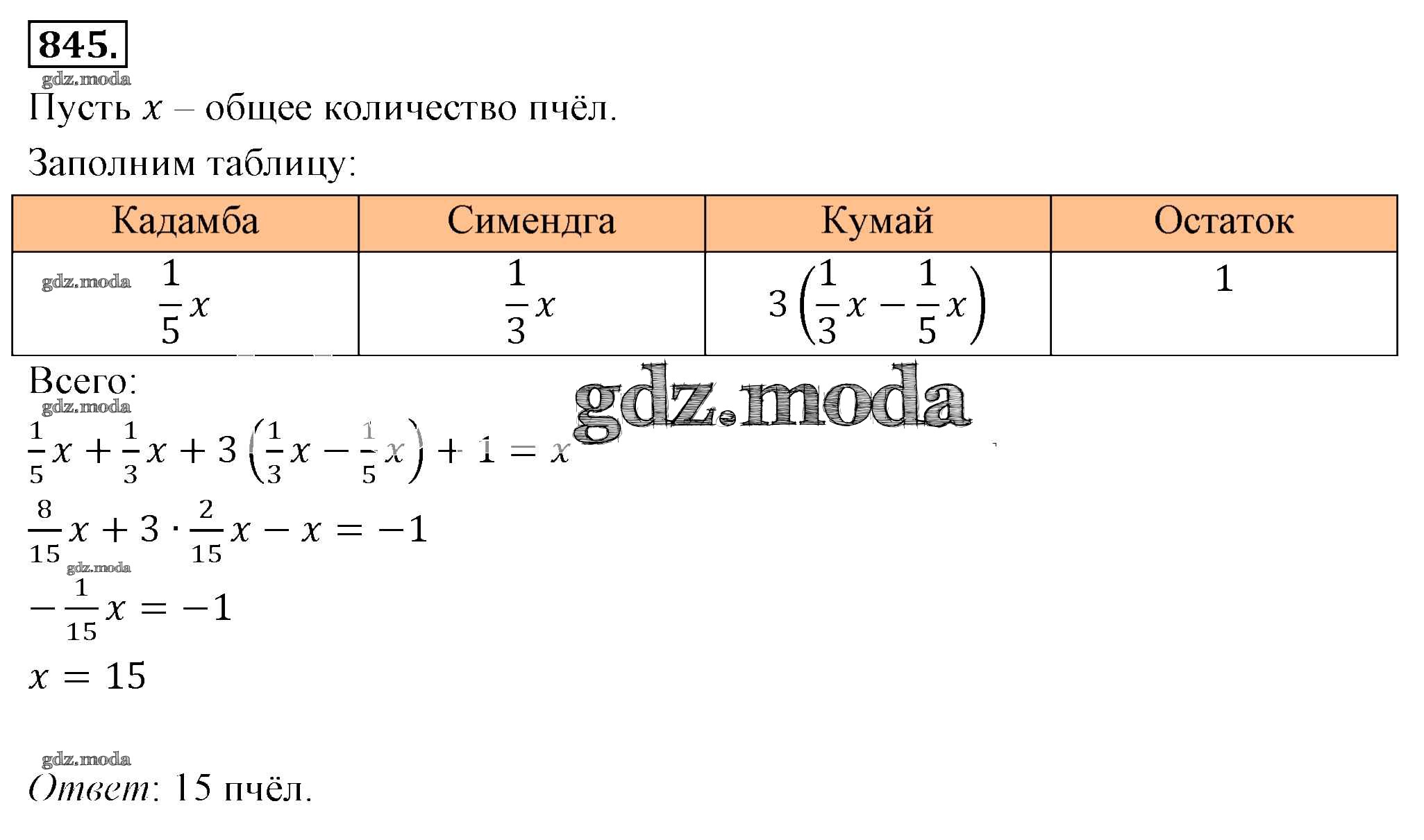 ОТВЕТ на задание № 845 Учебник по Алгебре 7 класс Мерзляк Алгоритм успеха Базовый уровень